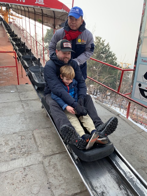 Going down was much fun/ via toboggan! This guy behind William was an absolute trip.