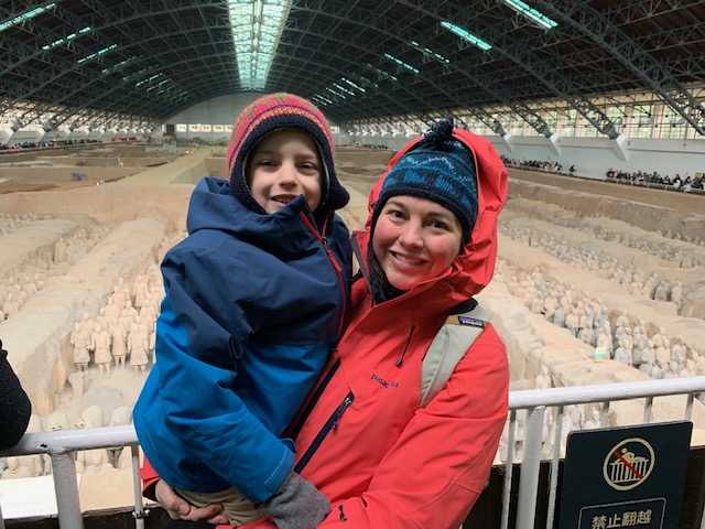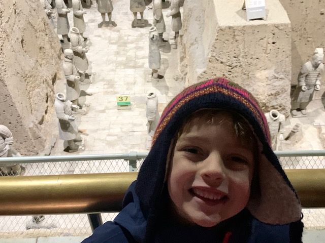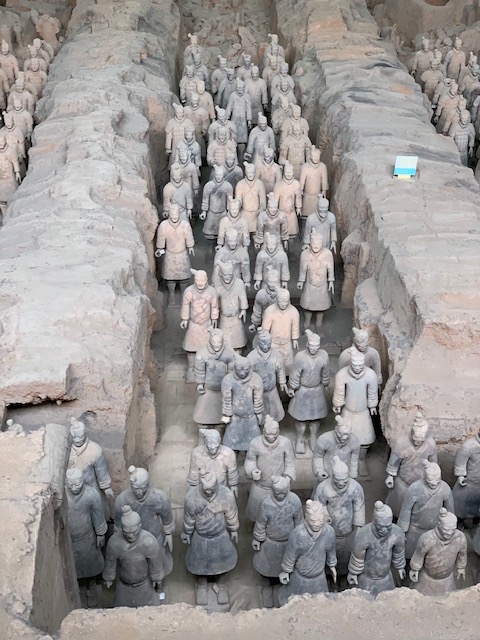 We woke up not quite as bright and early to visit the Terra Cotta warriors. The warriors were buried with Emperor Qinshihuang to protect him in the afterlife (along with dancers and other areas of the Mausoleum that are in planning stages of excavation). I didn’t realize until today how recently the site was discovered. A man, farmer Yangzhifa engaged the government in just 1974 to look into the pieces of warrior that were coming up in his field. Other farmers had discovered pieces of the warriors and thought they were bad omens, burying them back into the earth. Sometimes farmer Y (now 72) is at the sites and today we were able to meet him!
