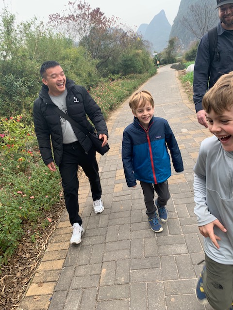Last full visit today and was a really nice one. Tomorrow we head back to Beijing and then fly home the following day! Don’t yet feel travel weary, but expect will feel good to get home. We’re currently sitting on the teak porch of this beautiful room (truly a room for a family of 4- most of China does not get this concept- one child policy is a very real thing)
