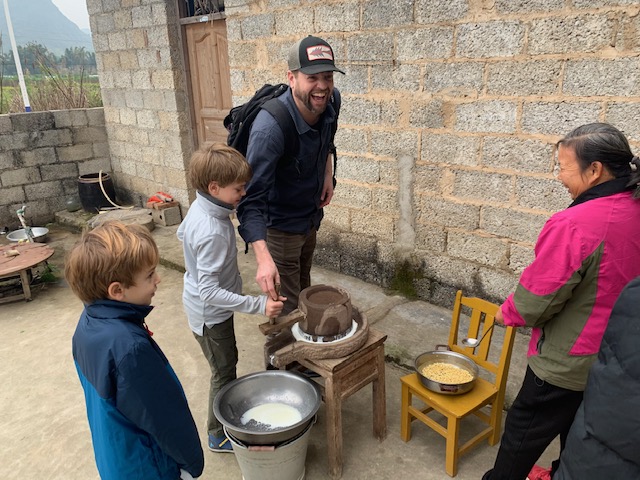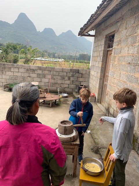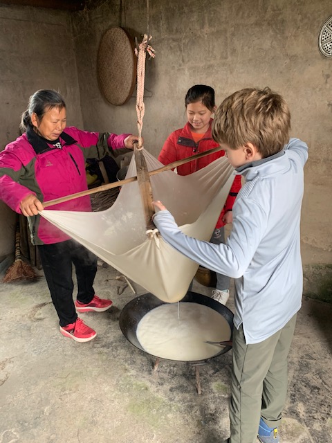 Admittedly I was questioning this family visit / tofu making stop, but turned out to be a lot of fun, esp for the kids. Shepherd offered to work for them for free plus pork dumplings.