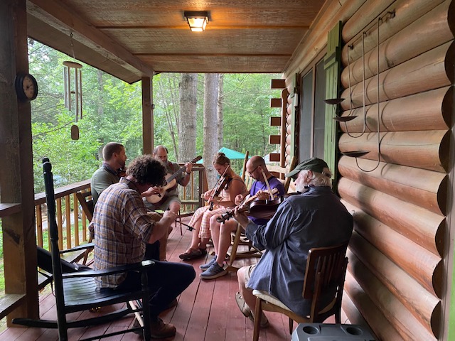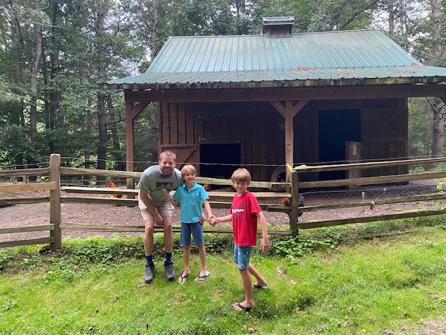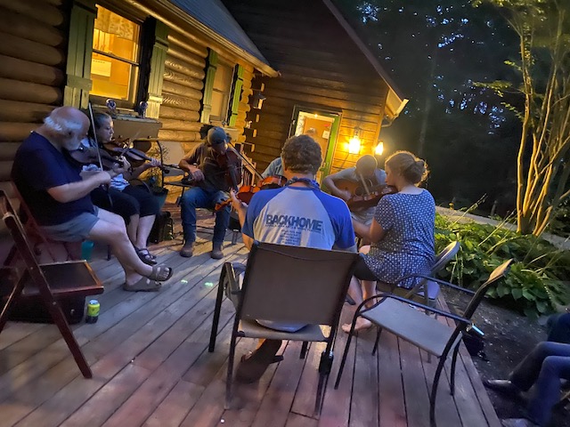 Time for one last summer escape before the “school year” begins! William’s music highlight of the year, for the past many years, is a musicians gathering in Clifftop, WV. As with all large gatherings of people this year, it was canceled, but a (much) smaller group decided to find a way to make some music happen in the mountains. David Strickland found a great spot in Maggie Valley, NC (near Waynesville) called Hawthorn Haven (http://hawthornhaven.com). The “haven” has two lodges, a cabin with two suites and chicken coops, a chapel and a lot of room to explore. We stayed in the bottom suite of the cabin and had a nice space for the family situated close to the main lodge where several musicians stayed (or camped in the outside yard area).