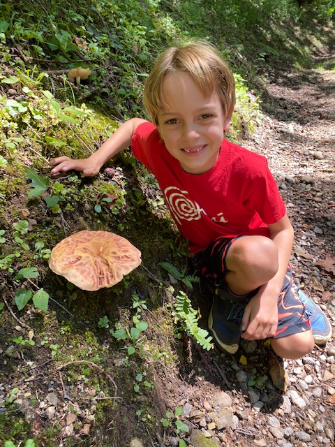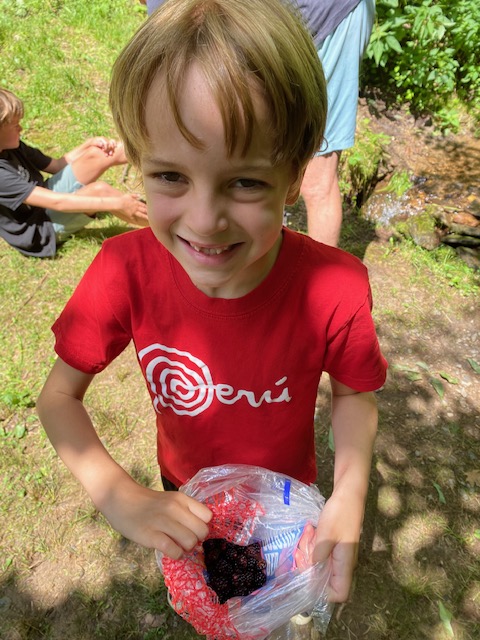 The weather compared to Jacksonville was heavenly- from mid 60s to 80s, at the max. While much of the weekend revolved around music, we took the boys on a few hikes – some around the property, one up on the blue ridge mountain parkway (Richland balsam loop) and on a longer / 3mile hike (Purchase Knob) where we saw an incredible variety of mushrooms. The boys helped gather blackberries for a cobbler that we made (and shared) that evening!