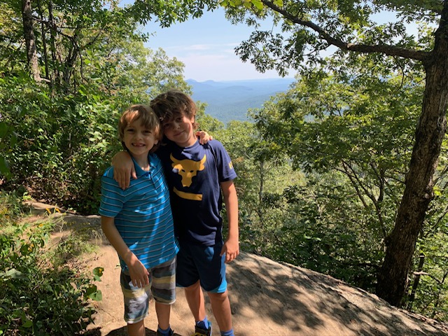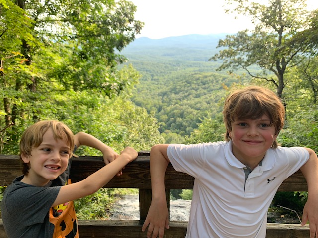 Tuesday was a school and work day, but when the boys wrapped early, they went on a hike with William to the top of Preacher Rock. Gorgeous lookout and Rawls maybe a bit unhappy with the “work” it took to get to the top. We went into the main square in Dahlonega to Spirit’s Tavern for dinner — easy family option and we loved seeing Shepherd eating more adventurously. He ordered a salad and ate dressing (never!) and red onion (multiple bites!). Also enjoyed a spicier sauce (gasp!) on his Mac n cheese bites.