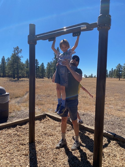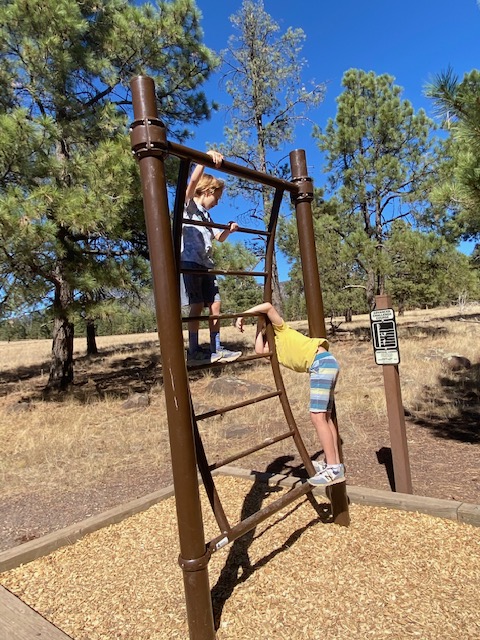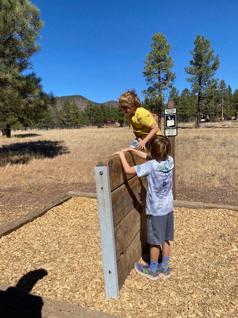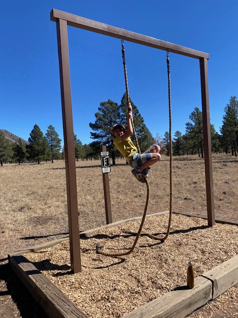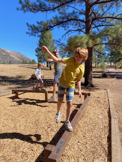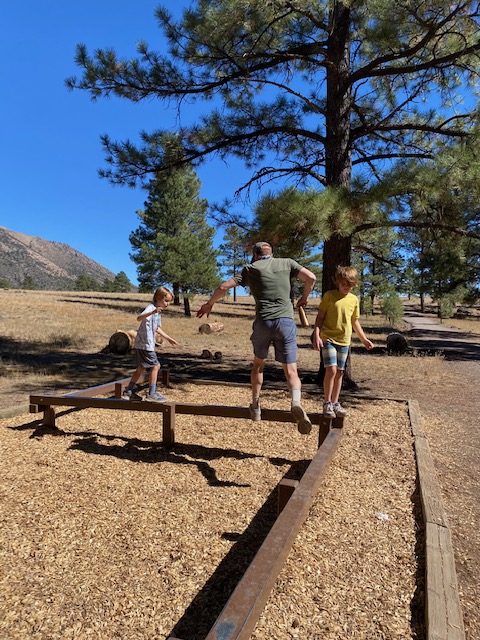 William scouted out a dog and family friendly walking area in Flagstaff -> Buffalo Park. The boys LOVED the workout activities along the walk/run track and Tater man kept pretty good pace.