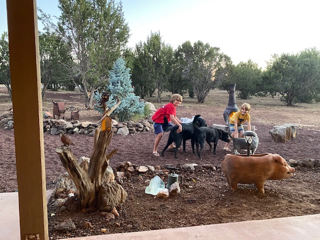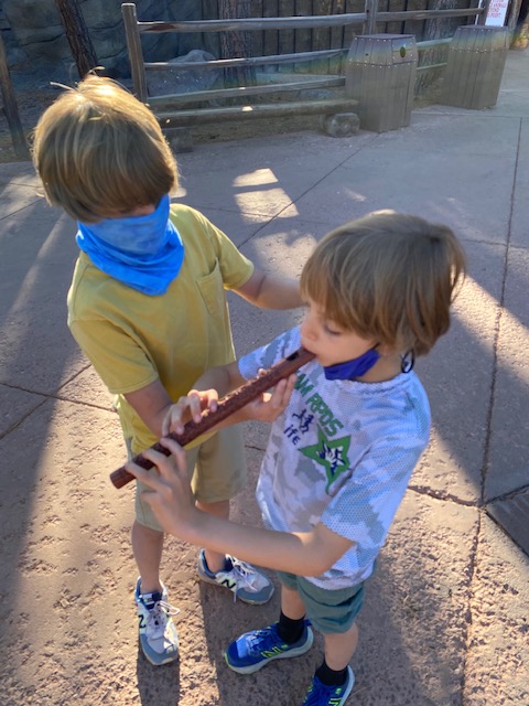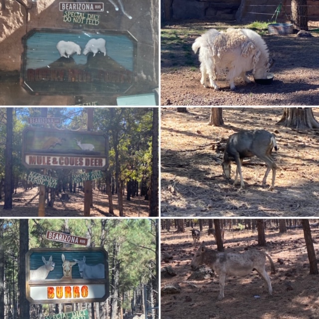 Tuesday – We really embraced the tourist side of Williams and did ALL the things, starting with Bearizona. We were uber skeptical of the local zoo visit as a good idea, especially hearing it was a partially drive-thru zoo… but it was SO well done. Each section of the drive-thru zoo contained a different animal, some where we were welcome to keep the windows down (deer, bison, burros) and some where we most definitely couldn’t (bears, more bears and the wolves). After the drive-thru, the walkable zoo area was nicely laid out. V. sweetly, Shepherd wanted to surprise his brother with a flute (randomly Rawls has been asking and we spotted one at the zoo). Today was a brotherly love day.