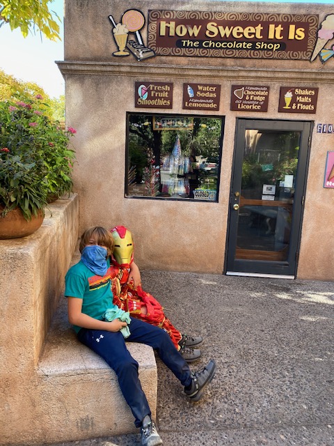 Rawls was dead set on his costume this year – Iron Man! Shepherd tossed around a bunch of ideas and couldn’t settle on anything he liked.. so he’s a “hiker”. Trick or treating this year involved visiting a few candy shops in Sedona and Flagstaff on our way to Lake Powell. Rawls.. so into – love it!