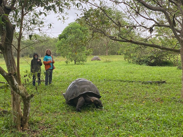 From the ferry, we drove to the Highlands of Santa Cruz to a tortoise reserve – we sampled a few empanadas as we hadn’t eaten since an early breakfast and walked around a maze of walking paths with tortoises all over the place. We respected the 10ft distance requested unless the tortoises were right next to the path, but we did see a girl leaning over the back of one of the larger tortoises and he didn’t seem to mind (most of the tortoises were male as the females were at lower elevations nesting).