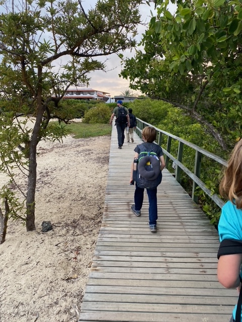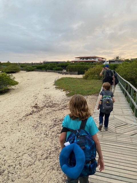 Today, we arrived in the Galapagos and we’re all a bit in awe of the arrival today – we arrived around 1pm today to the airport on Baltra Island – where we found our guide for the afternoon (Isabel). We took a couple minute shuttle to a Ferry to cross to Santa Cruz island. On the brief departure from the airport, we saw a land iguana walking into the airport, a seal jumped up right next to Rawlings on the ferry and we’d been there for minutes.