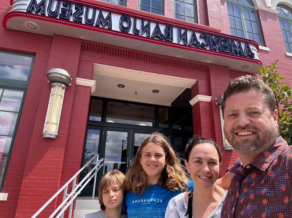 Kicking off a family roadtrip from Oklahoma to North Dakota – re-engaging in our plan to visit all 50 states together. The boys may or may not have dubbed this “the Boring States” trip, but from our initial stop, we aren’t experiencing it that way. We arrived mid-day into Oklahoma City and headed straight to the American Banjo Museum. Quite the collection of Banjos from the earliest used through jazz age and current. After visiting, Steve Martin donated the banjo that was built for him in connection with his Mark Twain award.