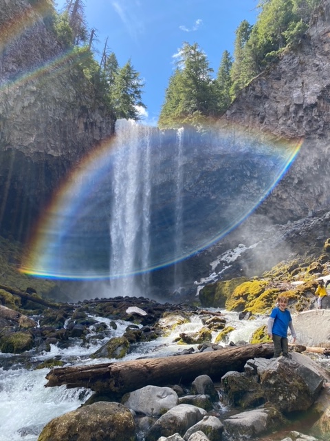 We packed up after brunch and headed toward Parkdale and Mt. Hood National forest where there are many beautiful hikes. We opted for the Tamanawas falls hike today ~5 miles and totally palatable for all the family hikers.
