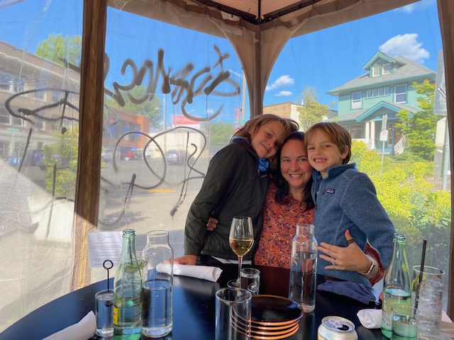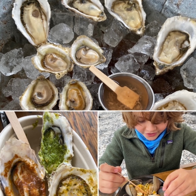 We ended the day in an industrial / fishing area of Seattle where a fun strip of restaurants has opened (and adapted to the times with very creative outdoor seating everywhere). We had dinner with the boys at the Walrus and the Carpenter – amazing oysters (Rawls loved, Shepherd tried.. twice but not so much), grilled sardines, broccoli rabe, steak tartar.. ending with the most amazing dessert per Rawls (maple bread pudding). I left to visit the ladies room and upon returning, it was MIA 😉 Both boys were super adventurous and we had a great time.