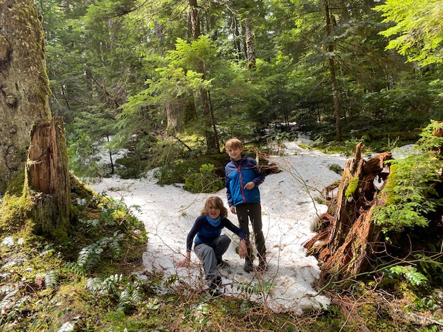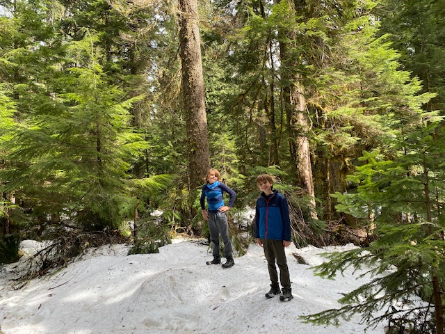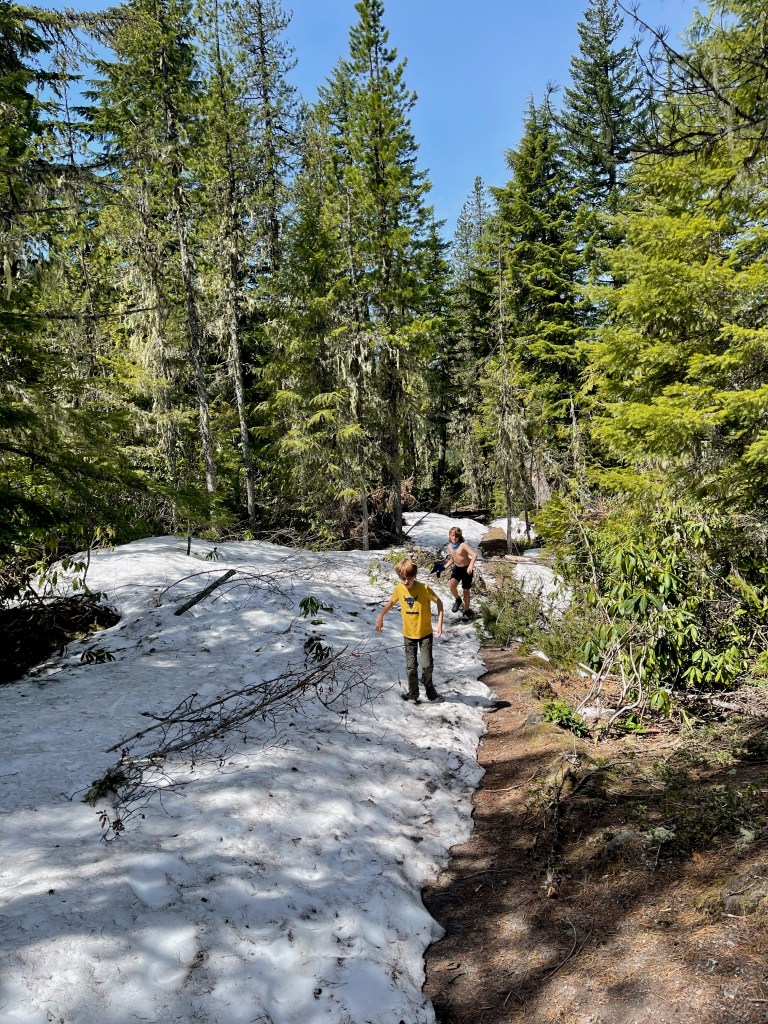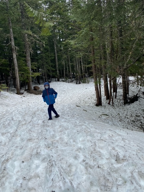 We decided to head up into the mountains to try out a hike and get a better vantage point of Mt. Hood. When we got up to checkout the trail (with forewarning that there’s a lot of snow but easily passable without snow boats) we let the boys walk down a bit in the snow, but felt a little much for our water resistant hiking shoes.