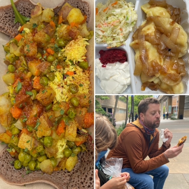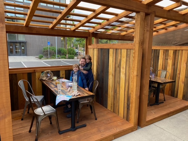From here, we made our way into Portland, heading to Cari’s favorite local market, New Seasons. Brief grocery run, checked into our home for the week and quick turn around for dinner. We went to OK Omens, one of the Portland restaurants that has converted its entire operations to outdoor cabanas. S loved the Dungeness crab, Rawls the cheddar beignets and burgers and the roasted carrots/maiitake mushrooms won me and William over!