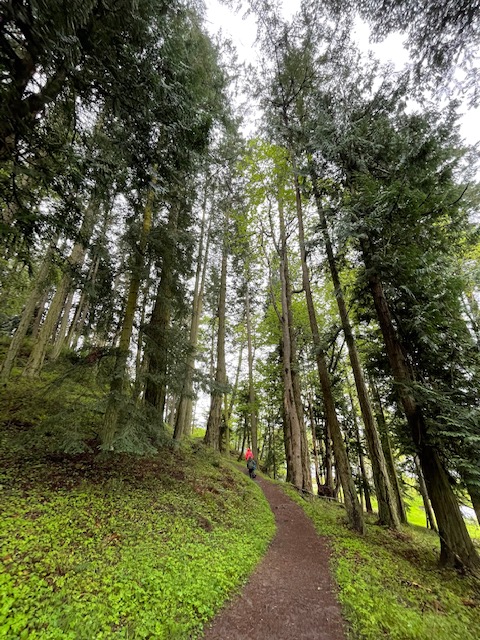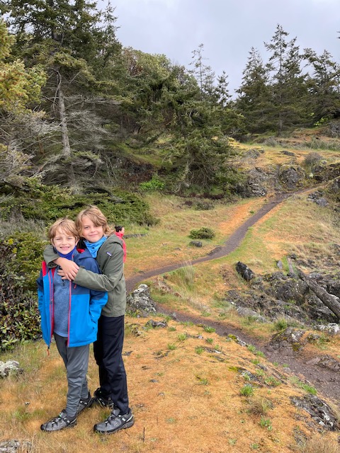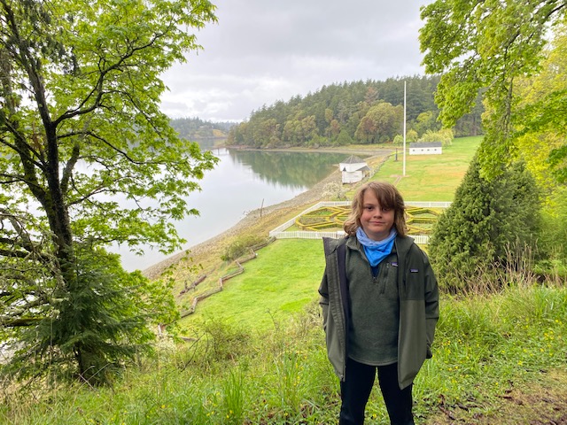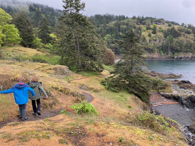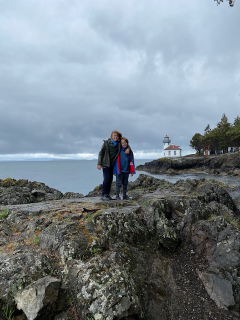 From here, we headed to Lime Kiln State Park which is the most likely spot from the island to spot Orcas – there are two groups of Orcas to potentially see (of which we saw neither) – pods that stay within the area and feed off of Chinook salmon: these are endangered as Chinook salmon populations have declined or migratory pods that pass through these channels and have an expanded diet: these populations are thriving. We hiked along the coast to “dead mans bay” and on the way back, I asked Rawls if he was keeping a close eye out for Orcas – “no, mom. I’m trying to find gems on the ground”. Priorities.