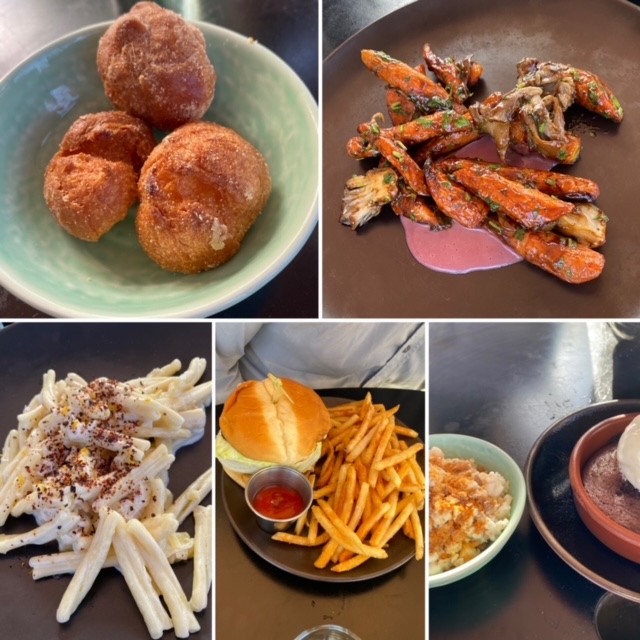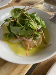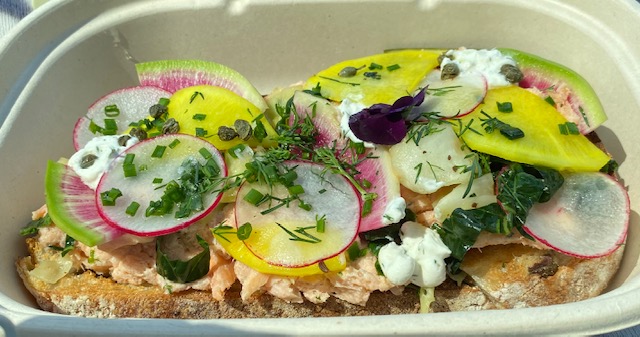 From here we went to Sugar Pine drive in. Will say the previous stops were fully as gorgeous as the pictures. Sugar Pine is clearly a local and visitor fave with a retro drive in feel but really inventive food offerings. The thing missed in the pics below is that it was utterly insane crowded from a parking perspective. If you can go in the middle of the week (mom and dad!), wld absolutely recommend. But seriously do you expect smoked trout and salmon rillette toast with all the fresh things from a drive-in?