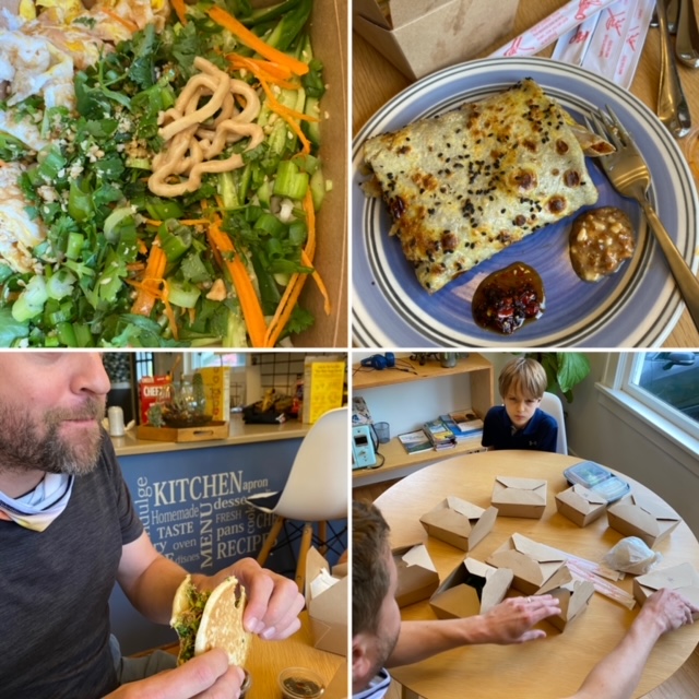 Dinner was takeout from an interesting Chinese spot, Master Kong. Rawls was really happy with this choice (we got him some eggs and avocado toast after 😉