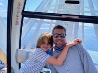We walked father to Miner’s landing where Rawls picked two activities – a virtual reality ride “Wings over Washington” which took us on a “tour” of several places we’ll be visiting. It was actually really well done and all had fun. Afterwards we went on the Ferris wheel and while we were waiting, we saw one of the pods setup with formal settings / raw dishes / salads / bottles of white and red – and then the pod just kept going with out anyone going into it. We’re still confused. But we had fun seeing the city from the many vantage points of our Ferris Wheel pod!