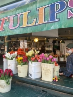 After cleaning up and chilling for… a moment, we walked back down to Pike’s place market – beautiful flowers and fun stalls.