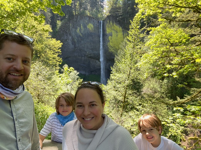 Woke up in Hood River to pack for our last transition to Portland. We had breakfast at Freshies (bagels and smoothies – boys requested something other than Broder Ost, but William and I would have fully gone back). We got on the road a bit after 10am with a plan to hit a couple of must do spots on the way into Portland.