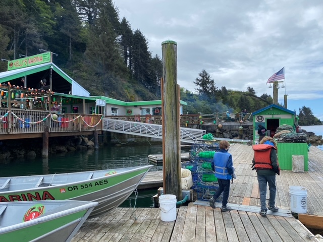 Friday We drove out towards the coast – first went to Nehalem Bay to a place called Kelly’s Brighton – colorful crabbing operation and the biggest Dungeness crabs. Each was about 2 lbs! We hung out on the docks and then picked apart the Dungeness crabs. The shell is filled with what they call “crab butter” – crab and seawater and amazingly does taste like salted butter.