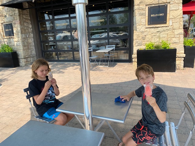 During the afternoon, we walked around the town of Ketchum – the boys spotted gourmet popsicles (Strawberry Lemonade for Rawls and chocolate marshmallow for Shepherd). We walked out to an arts festival that seemed to bring together many local artists and artisans. Shepherd and Rawlings are still talking about the chair hammock (Happy Place Hammocks – keeping a note here to remember). We walked through the Ketchum cemetery on the way back to Limelight and paid our respects to Ernest Hemingway at his grave site.