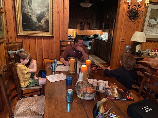 The next day it was William’s turn to pick lunch (bbq) and the boys to pick dinner (home slice pizza). But the highlight of the day was kayaking and swimming / swinging into the river.