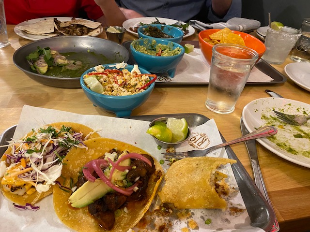 Reunion 19 Taco spot – we LOVED the green salsa, street corn, amazing vegetarian tacos (E) and shrimp aguachiles.